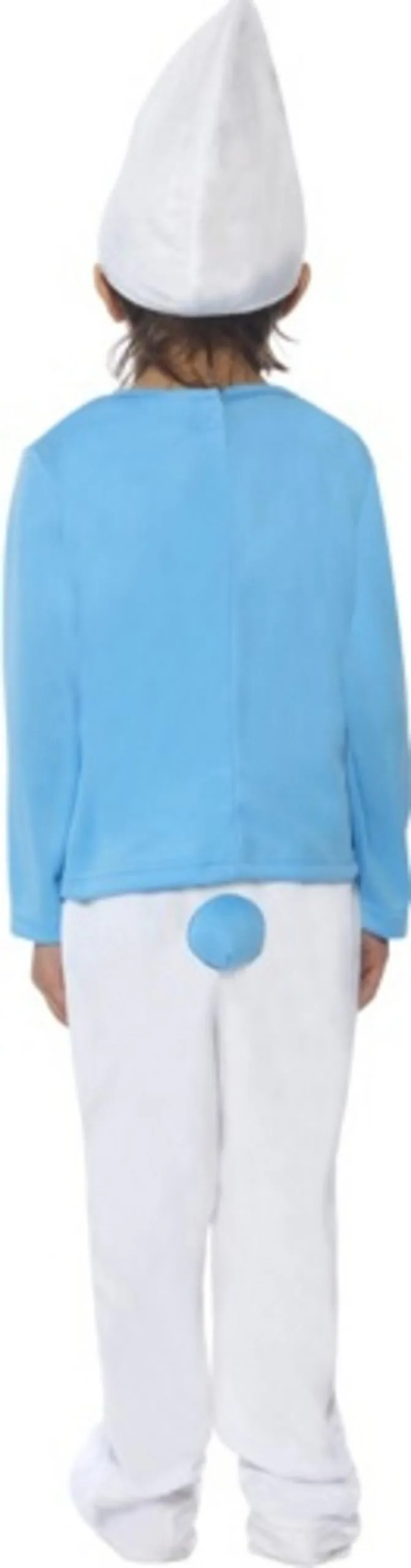 The Smurf fancy dress costume comprises of a long sleeved blue top