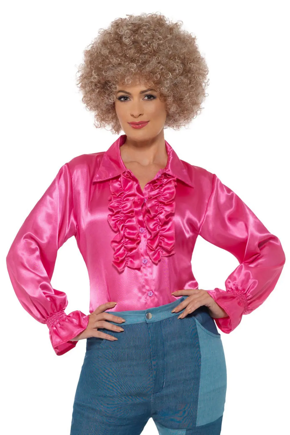 Pink Satin Ruffle Ladies Shirt