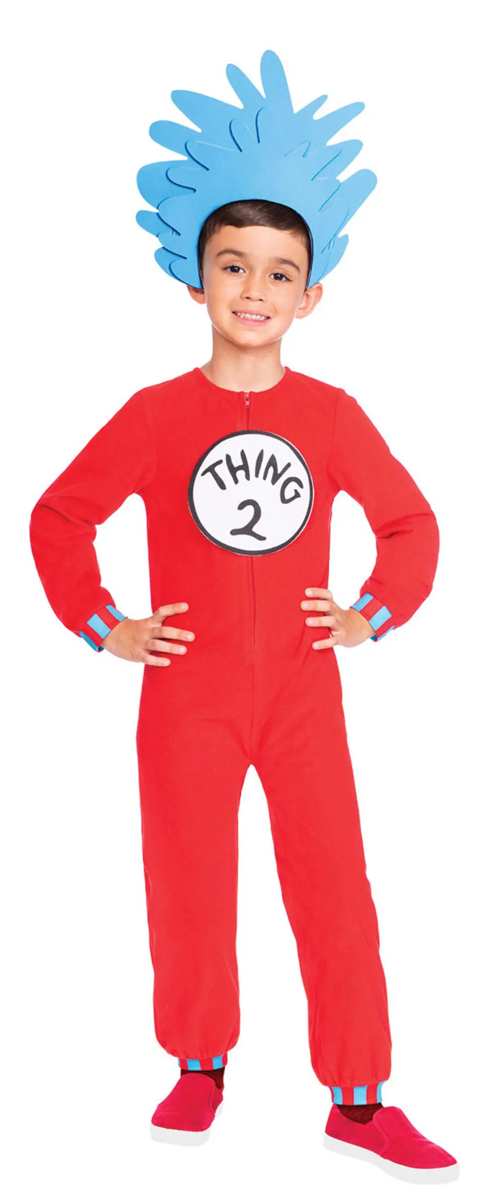 Jumpsuit with two interchangeable Thing 1 & 2 chest badges