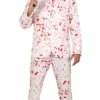 matching trousers with blood splatters up the front and a striped hat.